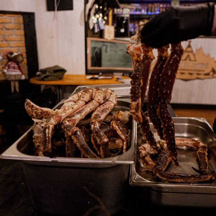 - Арктическая уха – супчик из одного или нескольких видов рыбы, с зеленью или морошкой, иногда со сливками или манкой. Славится мурманская уха из краба, но главный привкус придается не за счет крабового мяса, а благодаря панцирю – его варят несколько часов. Приезжим рекомендуется дегустировать уху в разных ресторанах, столовых и сравнивать – по вкусовым свойствам блюда могут различаться.