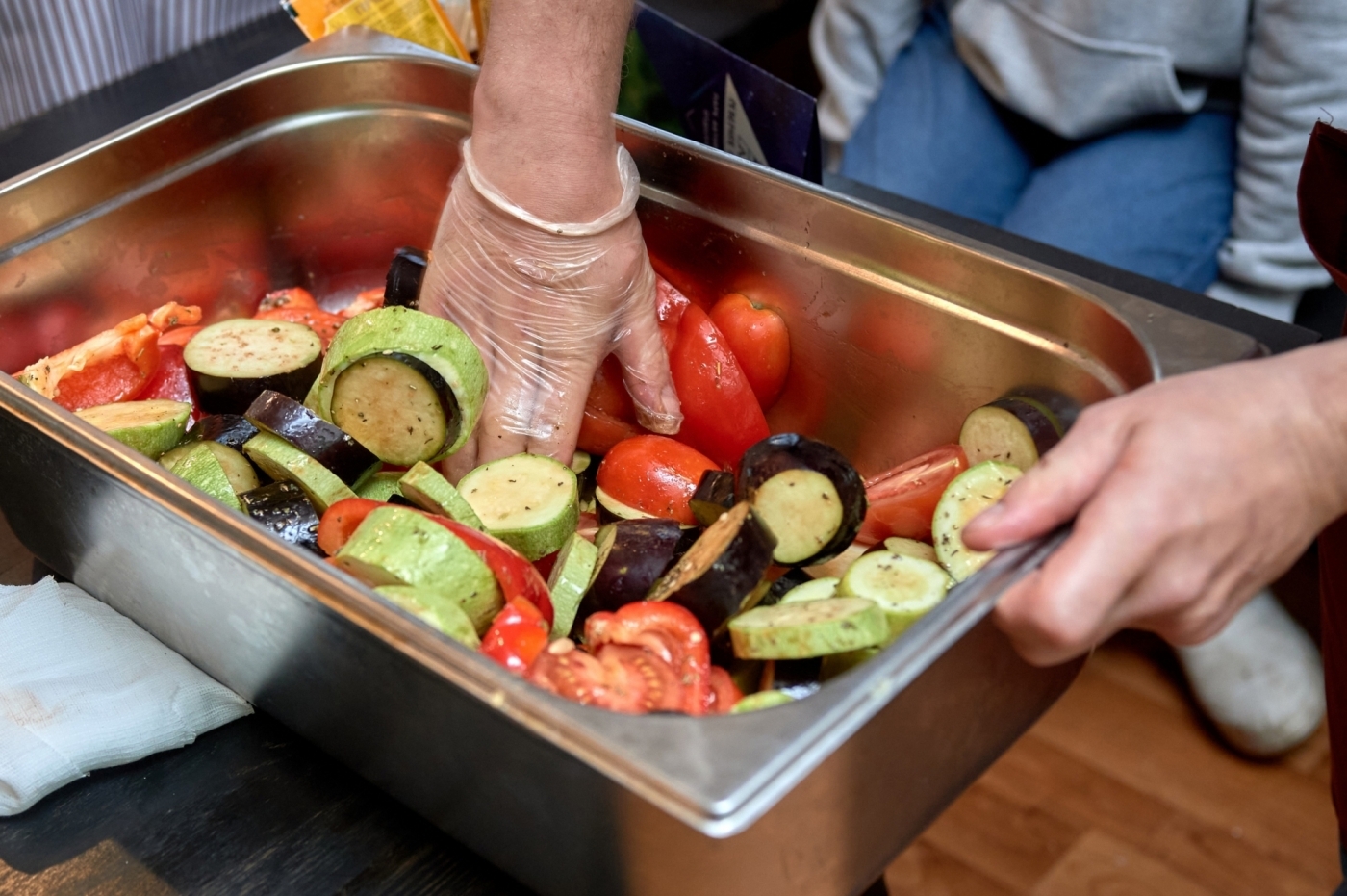 Приготовление овощей-гриль по секретному арктическому рецепту. В состав входит: помидоры, болгарский перец, кабачок, баклажан.