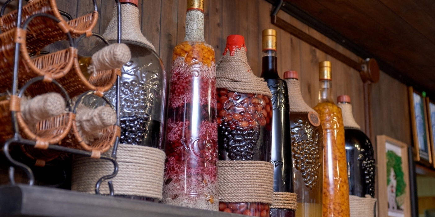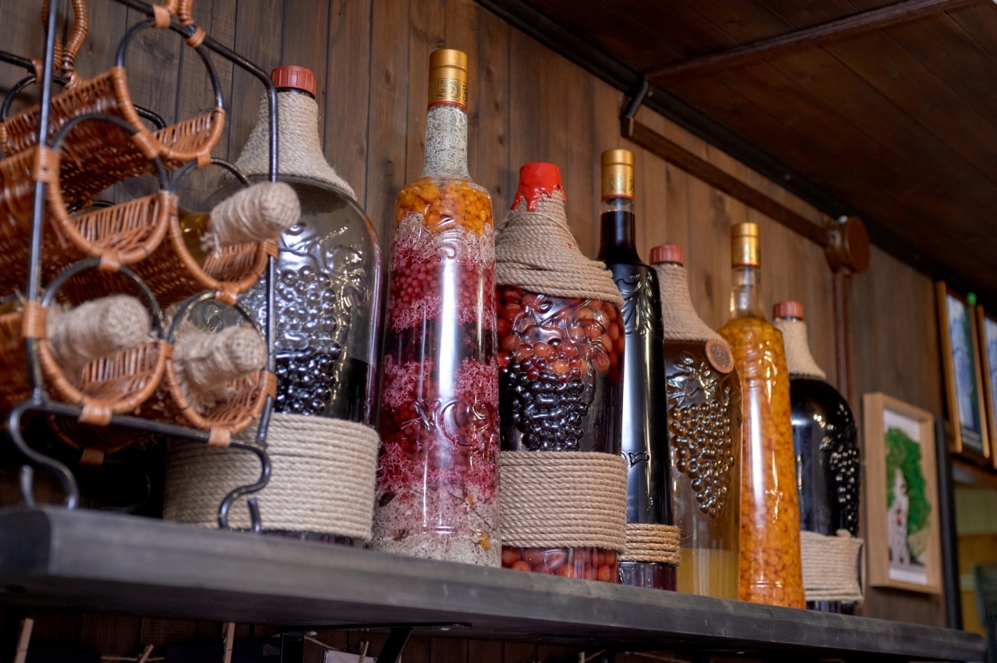 - Угощение фирменными настойками и легкими закусками (канапе из печени трески, семги в сырном соусе, паштет из оленины);