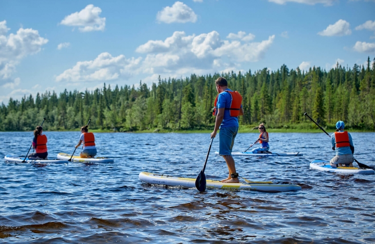 Эксклюзивное предложение нашего парка - тур по озеру Кильдинское на сап-борде! Это захватывающий вид спорта и, в тоже время, очень простое и интуитивно понятное управление и невероятный релакс от покорения водной глади озера.