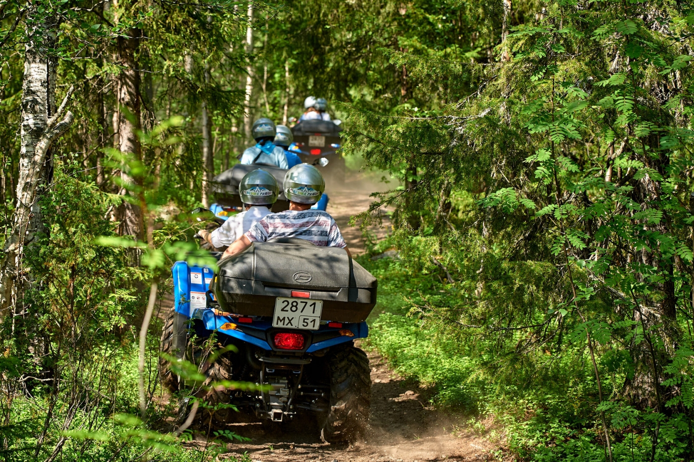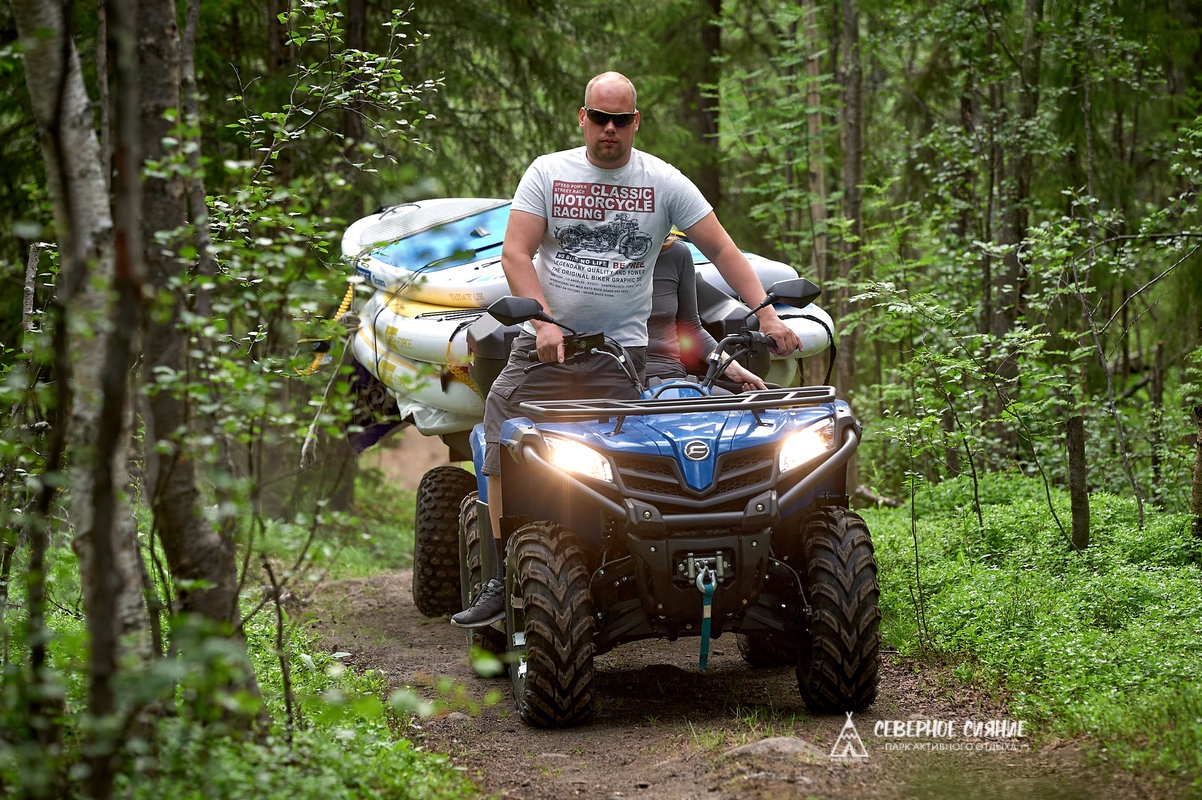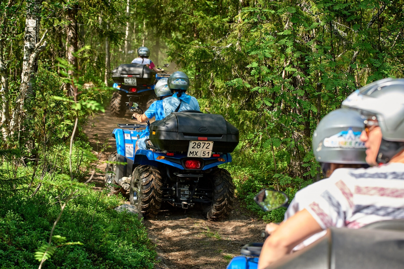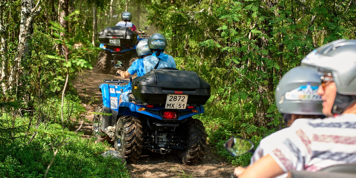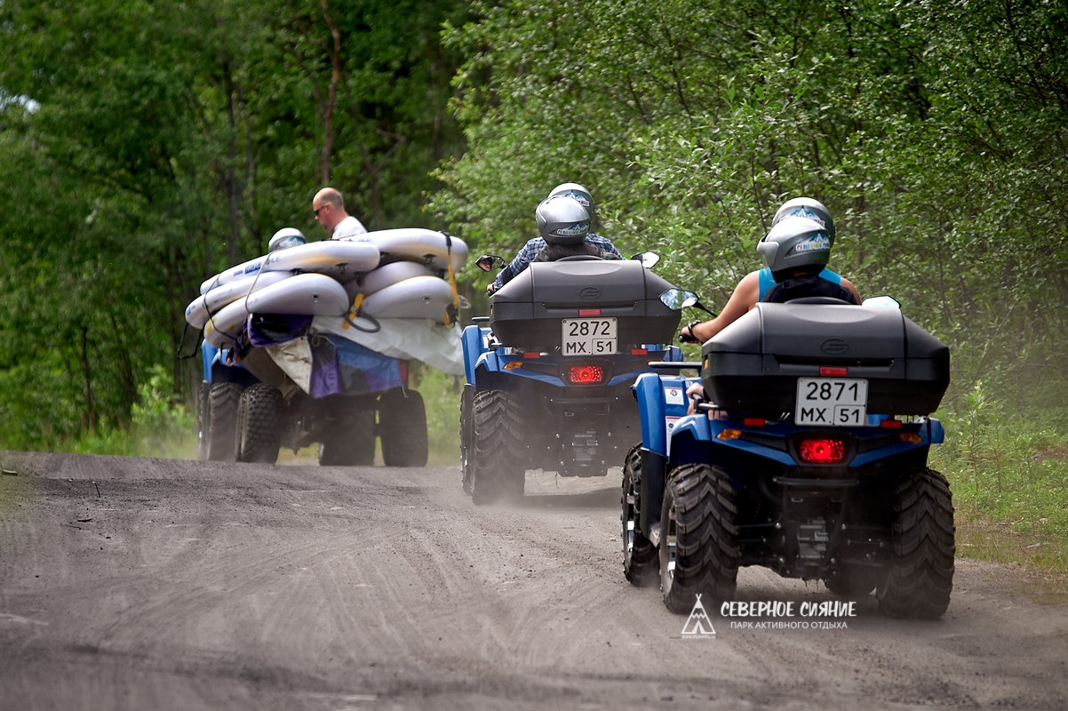 Включает: инструктаж по технике безопасности, спасательный жилет, поездка до озера Кильдинское на квадроцикле, водная прогулка на лодке, возвращение на квадроцикле обратно в парк.