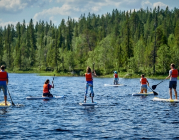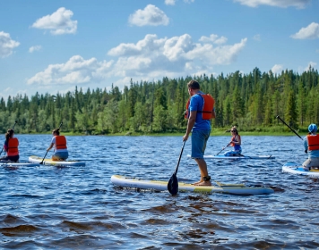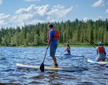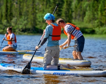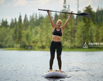 Эксклюзивное предложение нашего парка - тур по озеру Кильдинское на сап-борде! Это захватывающий вид спорта и, в тоже время, очень простое и интуитивно понятное управление и невероятный релакс от покорения водной глади озера.
