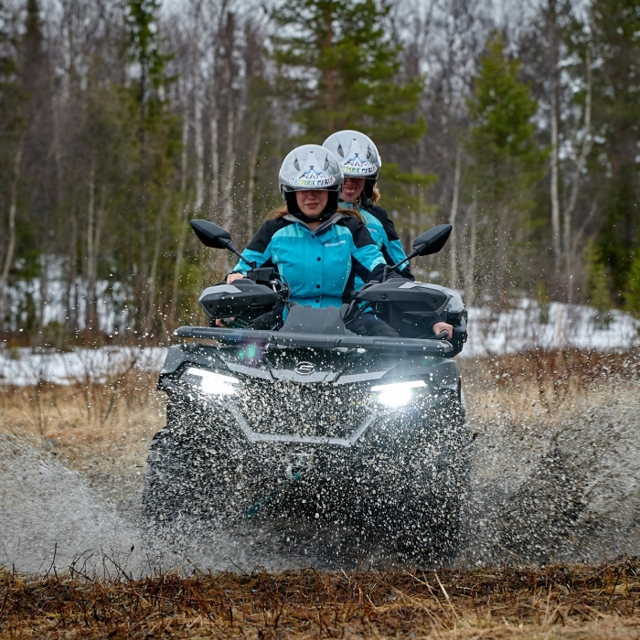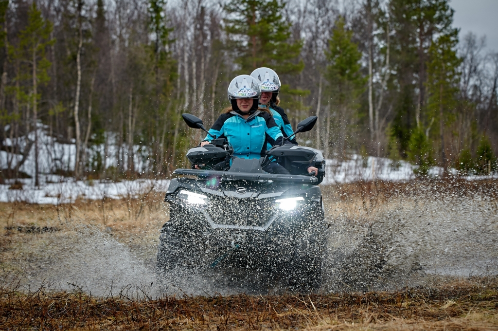 А что же летом? Приезжайте – покажем! Лето на Севере удивительное! Его мы всегда ждем с нетерпением, ведь наступает самое любимое время – Полярный день! Увидев на часах цифру 12, вы будете сомневаться: день это или ночь! Ведь солнце не заходит за горизонт круглые сутки. Время для путешествий. Мощные квадроциклы в миг промчат Вас по лесным тропинкам или загонят в непроходимое бездорожье – выбор маршрута полностью в Ваших руках!